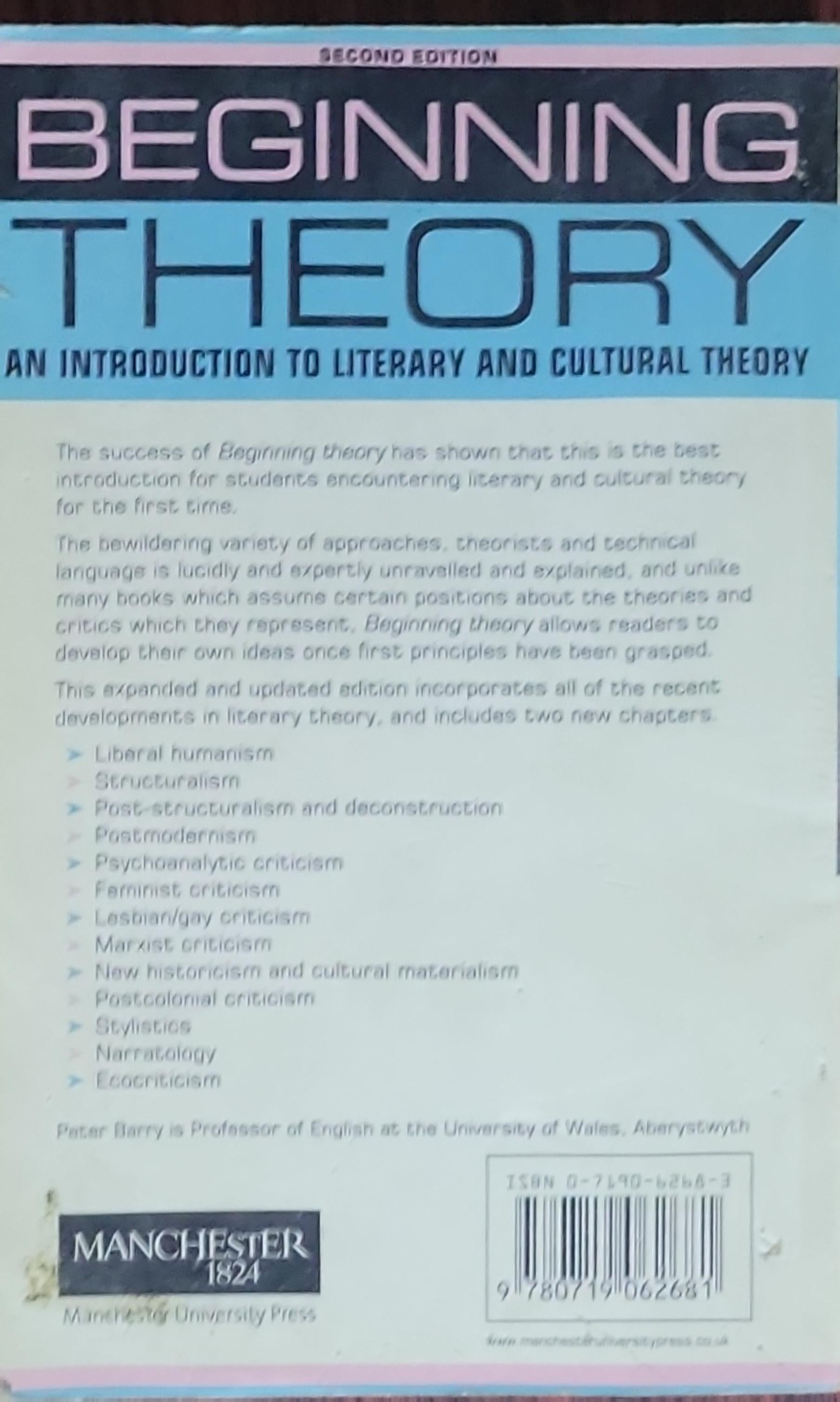 In this second edition of Beginning Theory, the variety of approaches, theorists, and technical language is lucidly and expertly unraveled and explained, and allows readers to develop their own ideas once first principles have been grasped. Expanded and updated from the original edition first published in 1995, Peter Barry has incorporated all of the recent developments in literary theory, adding two new chapters covering the emergent Eco-criticism and the re-emerging Narratology.