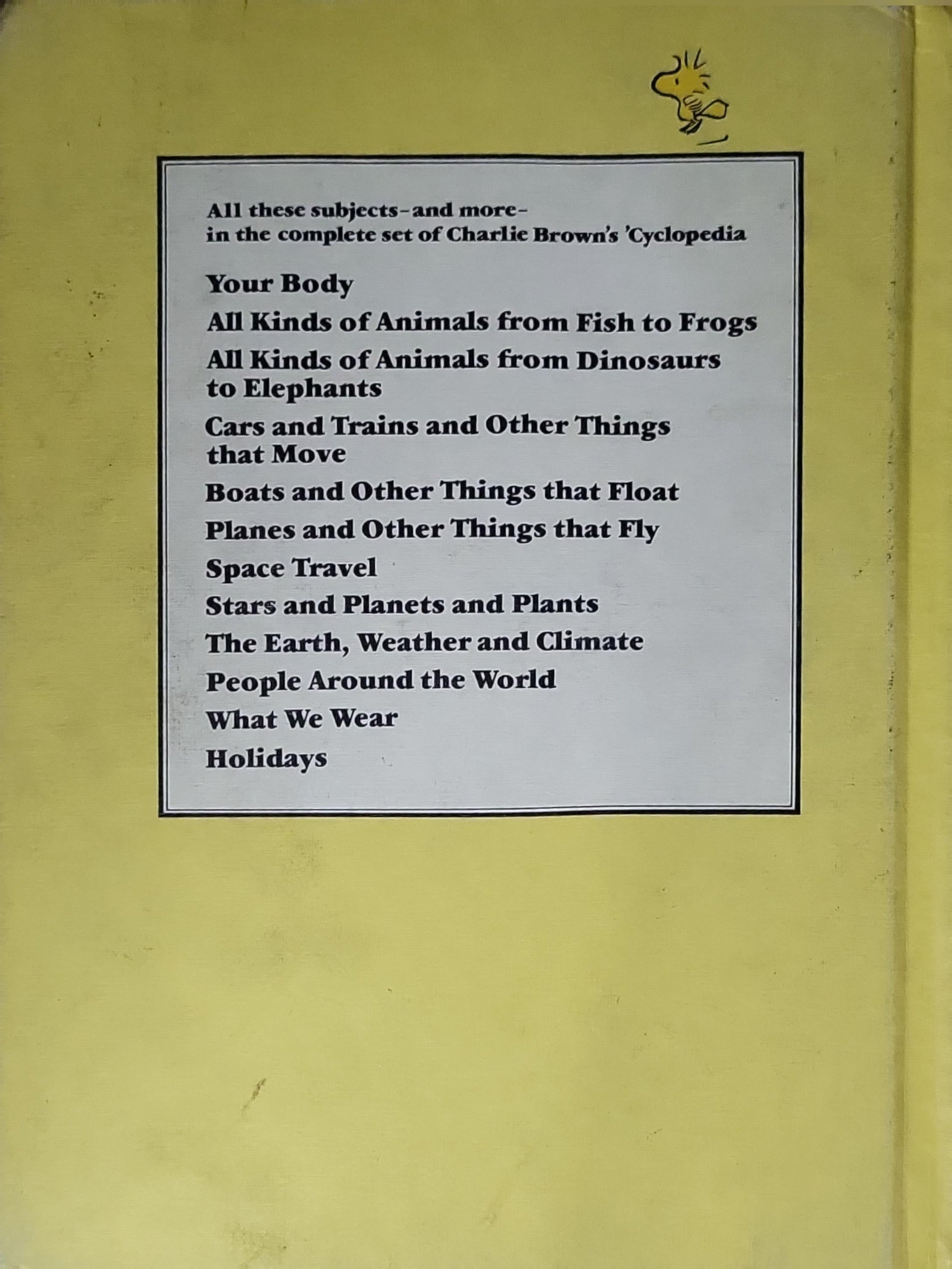 A children's encyclopedia volume compiling various topics under the Charlie Brown 'Cyclopedia' series, presenting fun facts and quick-fire questions about everyday moving things and related topics.