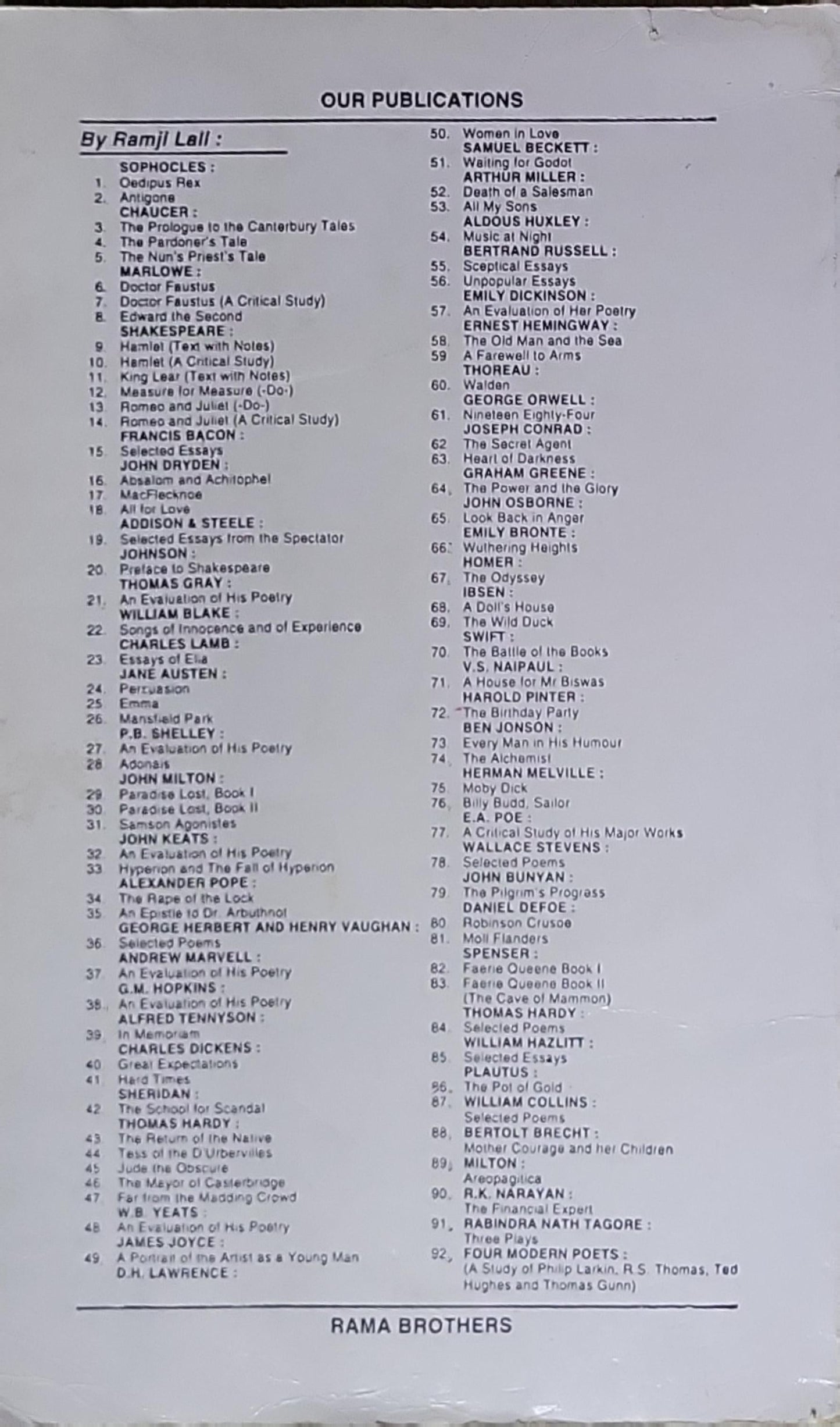 Publisher: Rama Brothers (Ramji Lall)