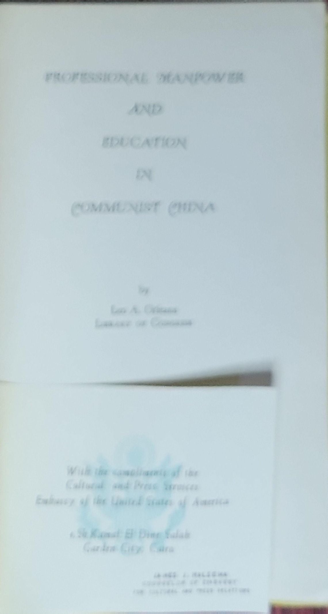 Professional Manpower and Education in Communist China: NSF 61-3
