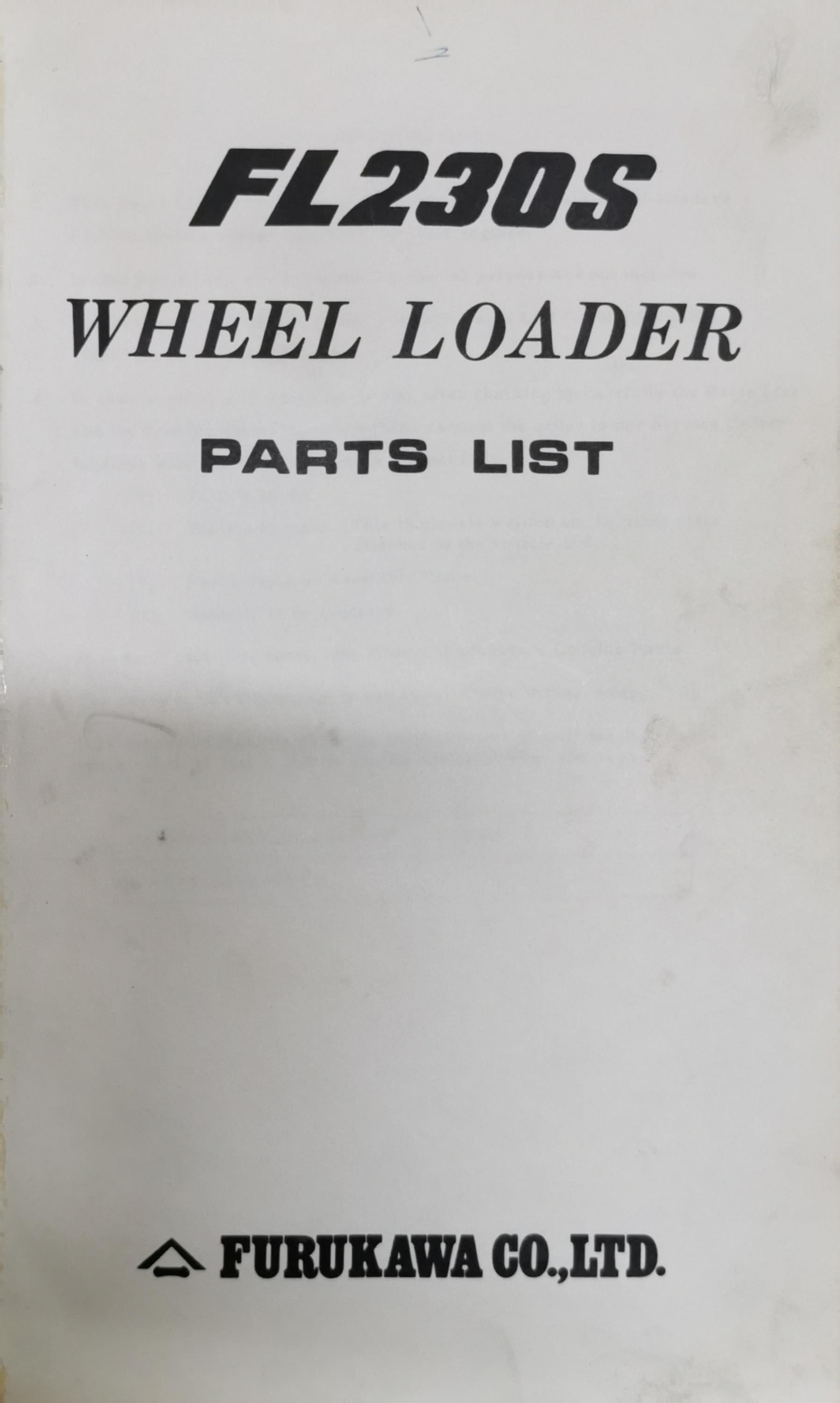FL230S: Wheel Loader Parts List By Furukawa Co., Ltd.