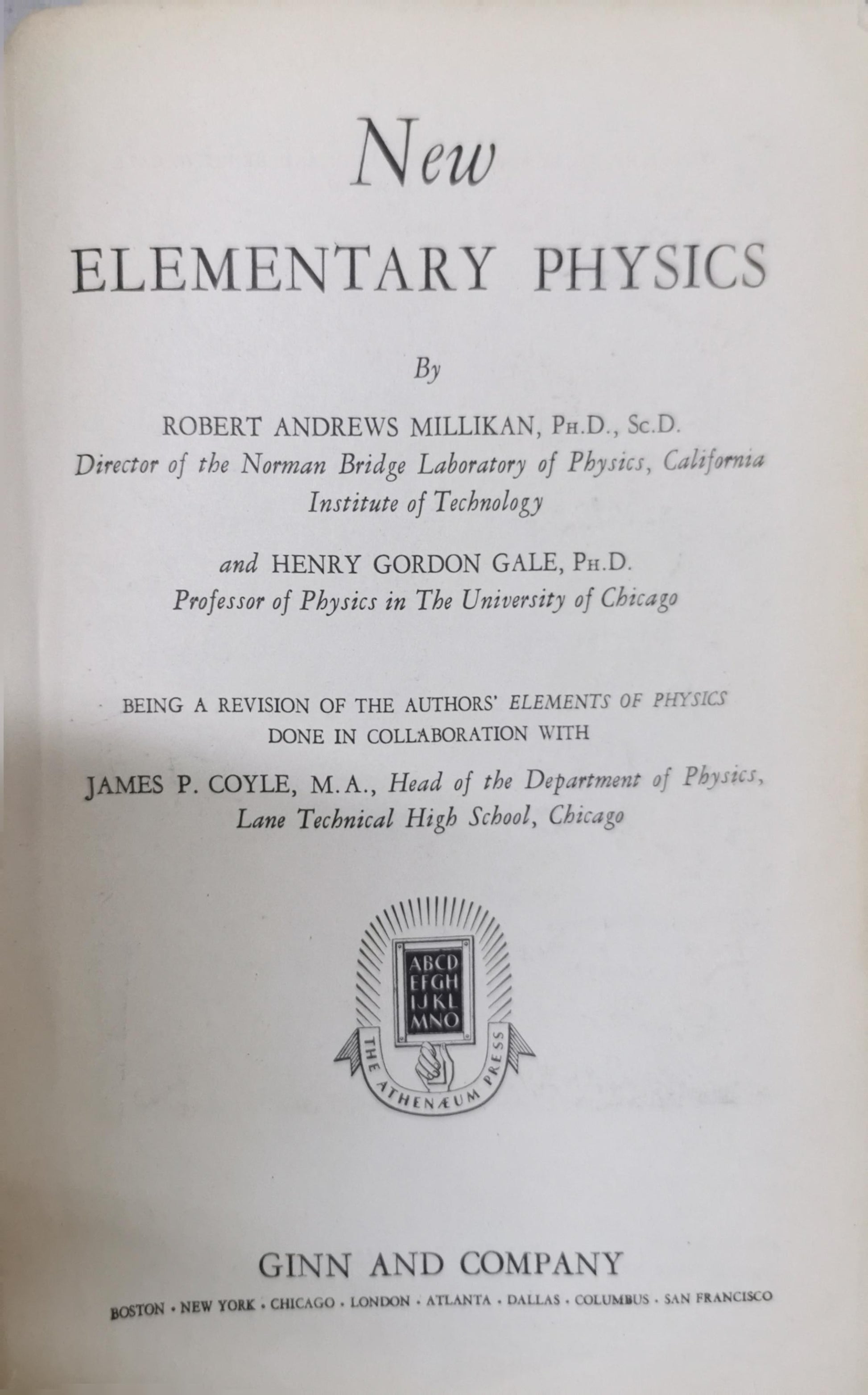 New Elementary Physics By Robert Andrews Millikan and Henry Gordon Gale and James P. Coyle (collaborator)