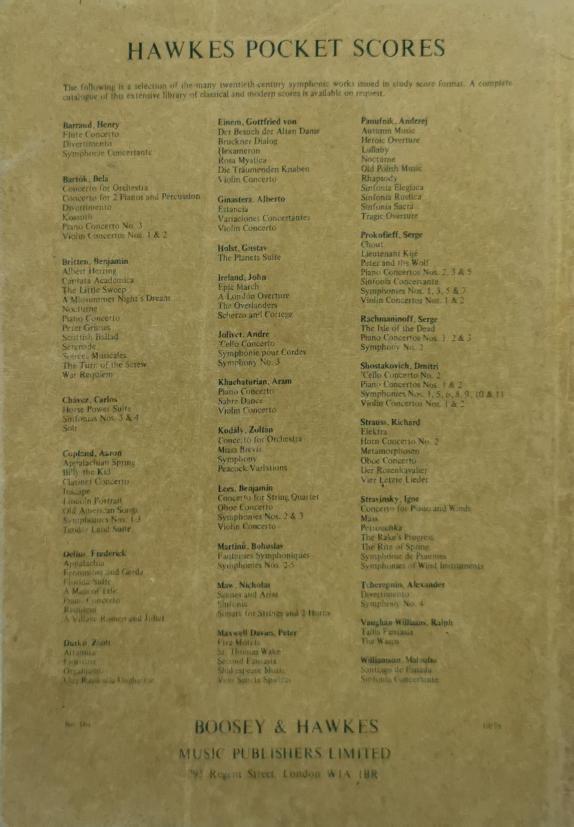 Publisher: Boosey & Hawkes Music Publishers Limited