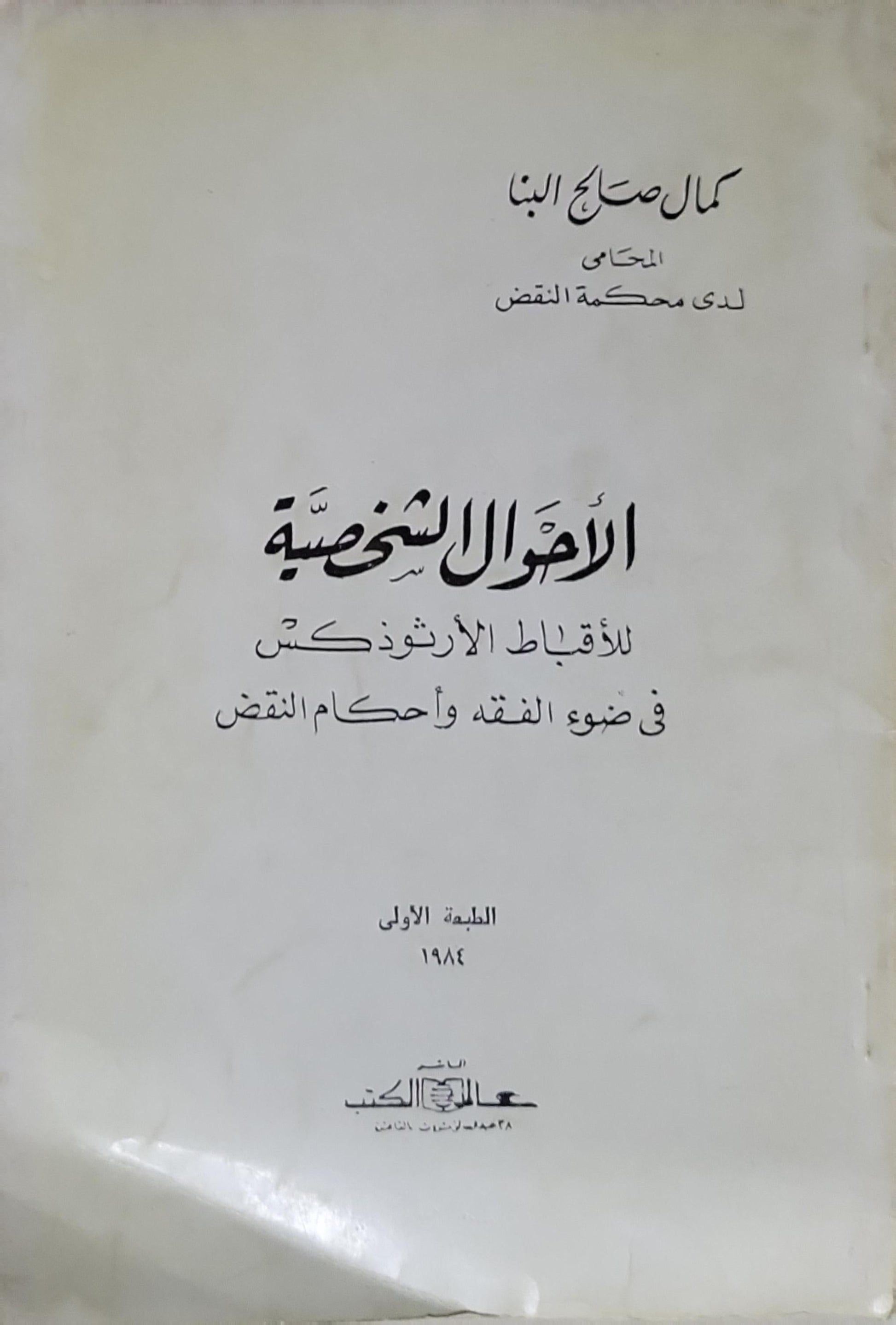 الأحوال الشخصية: للأقباط الأرثوذكس في ضوء الفقه وأحكام النقض — الطبعة الأولى 1984 - كمال صالح البنا
