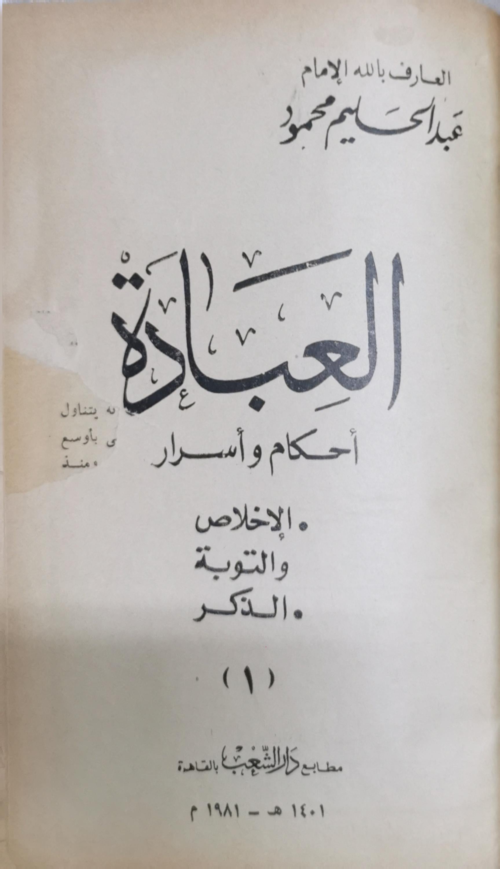 العبادة: أحكام وأسرار: الإخلاص والتوبة والذكر (1) - عبد الحليم محمود