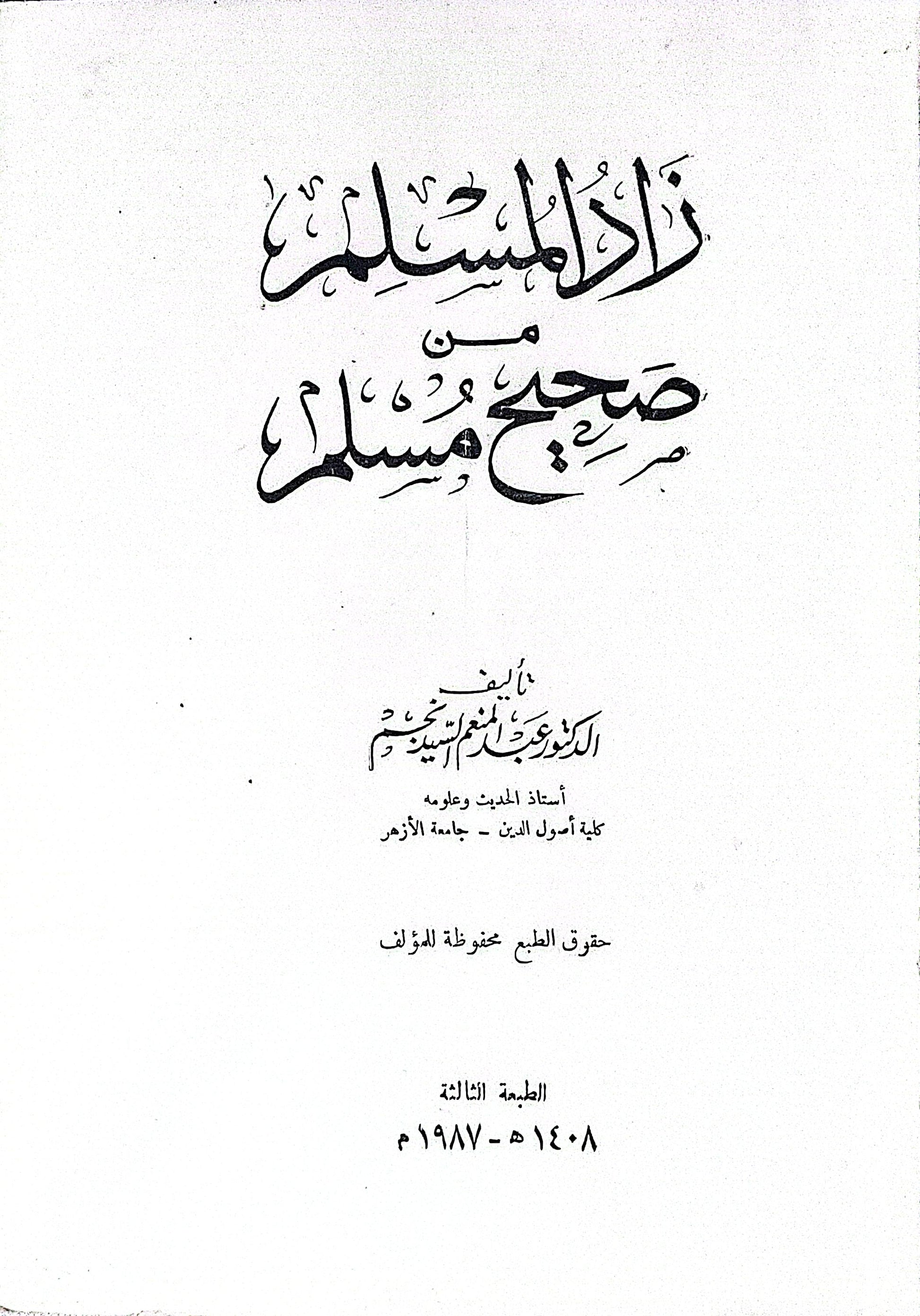 زاد المسلم من صحيح مسلم: الطبعة الثالثة، ١٤٠٨ هـ - ١٩٨٧ م - الدكتور عبد الغني عبد الخالق