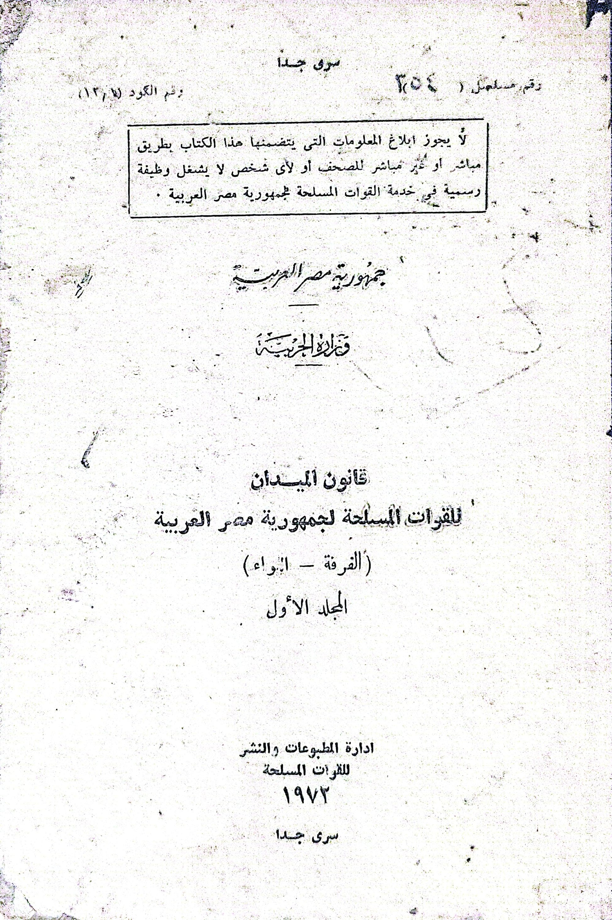 قانون الميدان: للقوات المسلحة لجمهورية مصر العربية (الفرقة - اللواء)، المجلد الأول