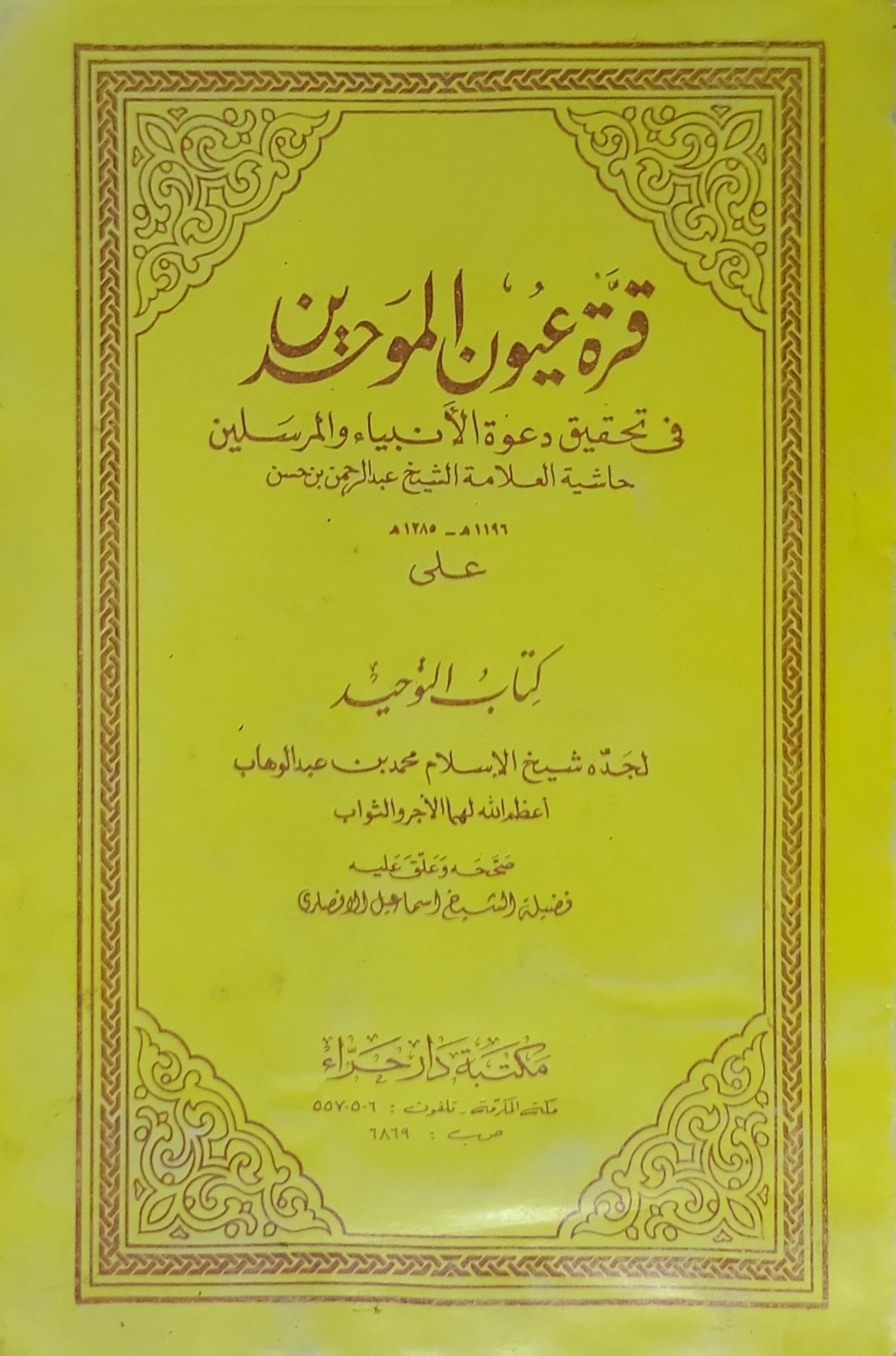 قرة عيون الموحدين: في تحقيق دعوة الأنبياء والمرسلين؛ حاشية العلامة الشيخ عبد الرحمن بن حسن على كتاب التوحيد لجدّه شيخ الإسلام محمد بن عبد الوهاب؛ تحقيق وتعليق: الشيخ إسماعيل الأنصاري - عبد الرحمن بن حسن بن محمد بن عبد الوهاب - محمد بن عبد الوهاب