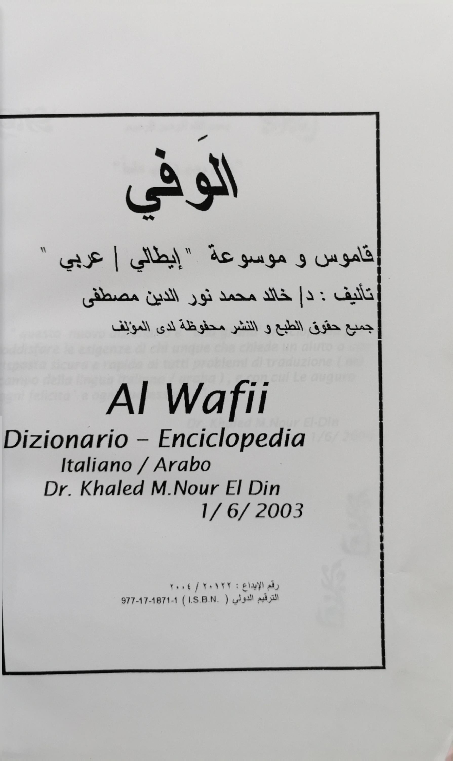 Al Wafii: Dizionario – Enciclopedia Italiano / Arabo By Dr. Khaled M. Nour El Din Mustafa