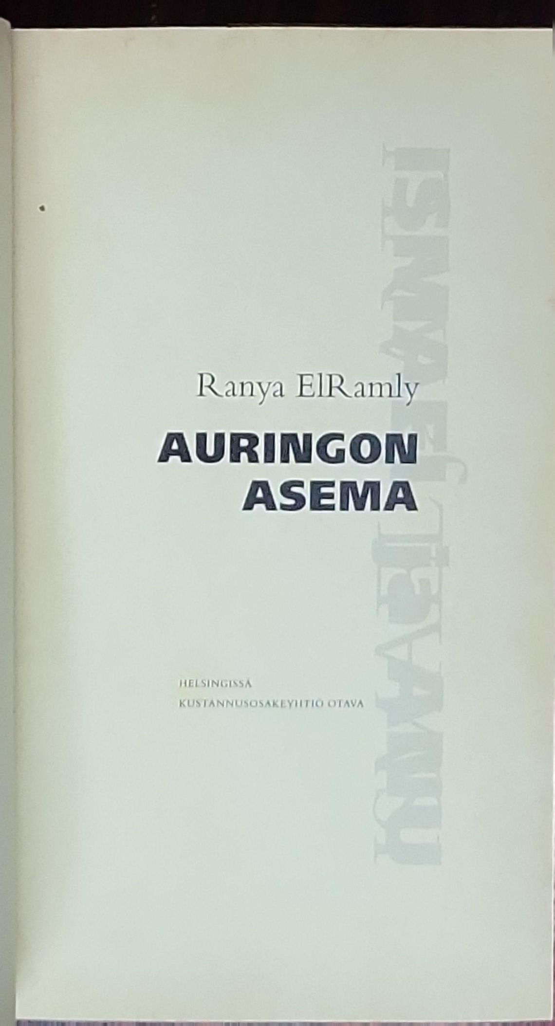 Esikoisteos, joka kertoo egyptiläisen Ismaelin ja suomalaisen Anun rakkaustarinan sekä kahden kulttuurin välissä kasvamisesta.