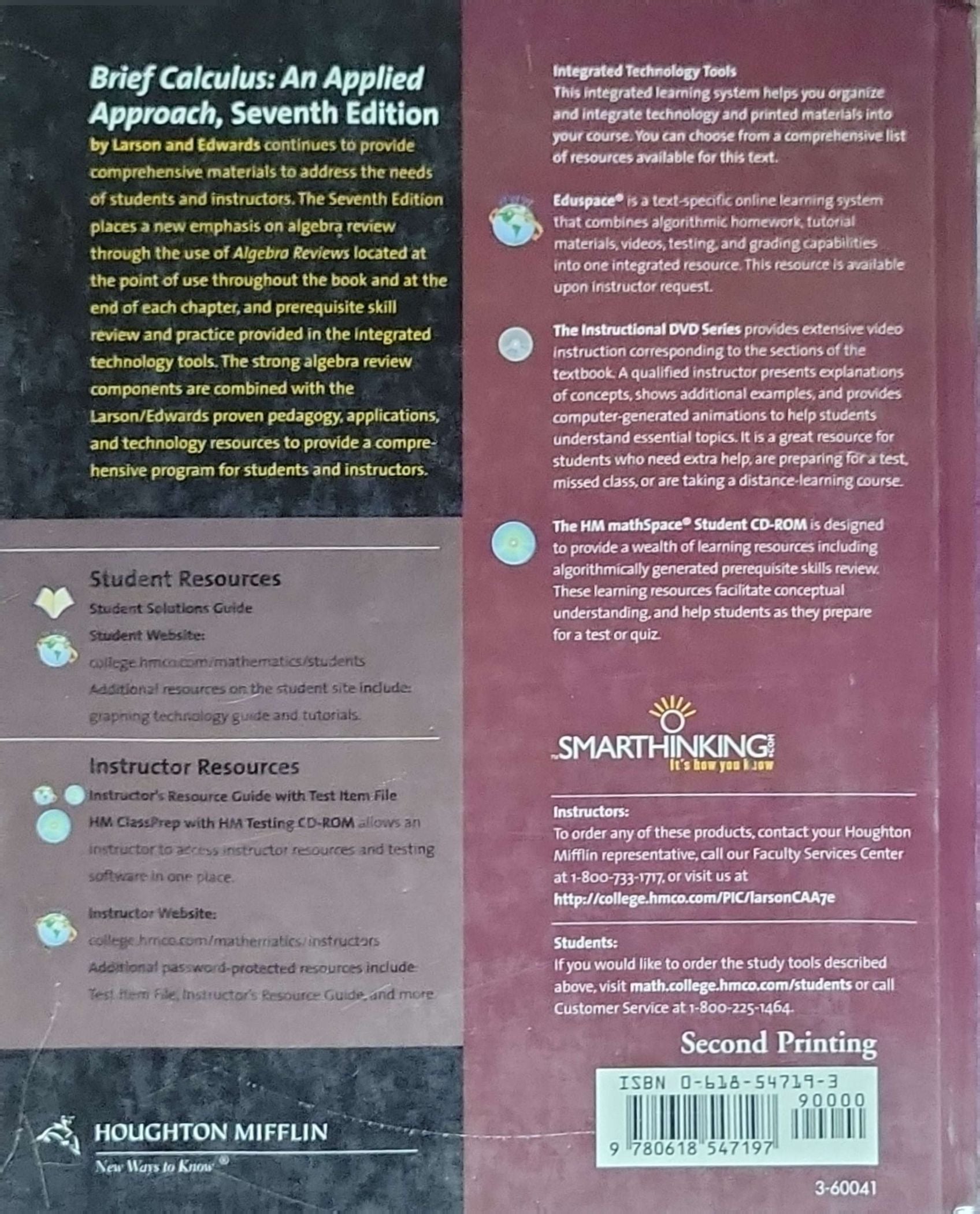 A calculus text designed for non‑math majors, emphasizing applications and an applied approach. Includes integrated technology tools and instructor/student resources.