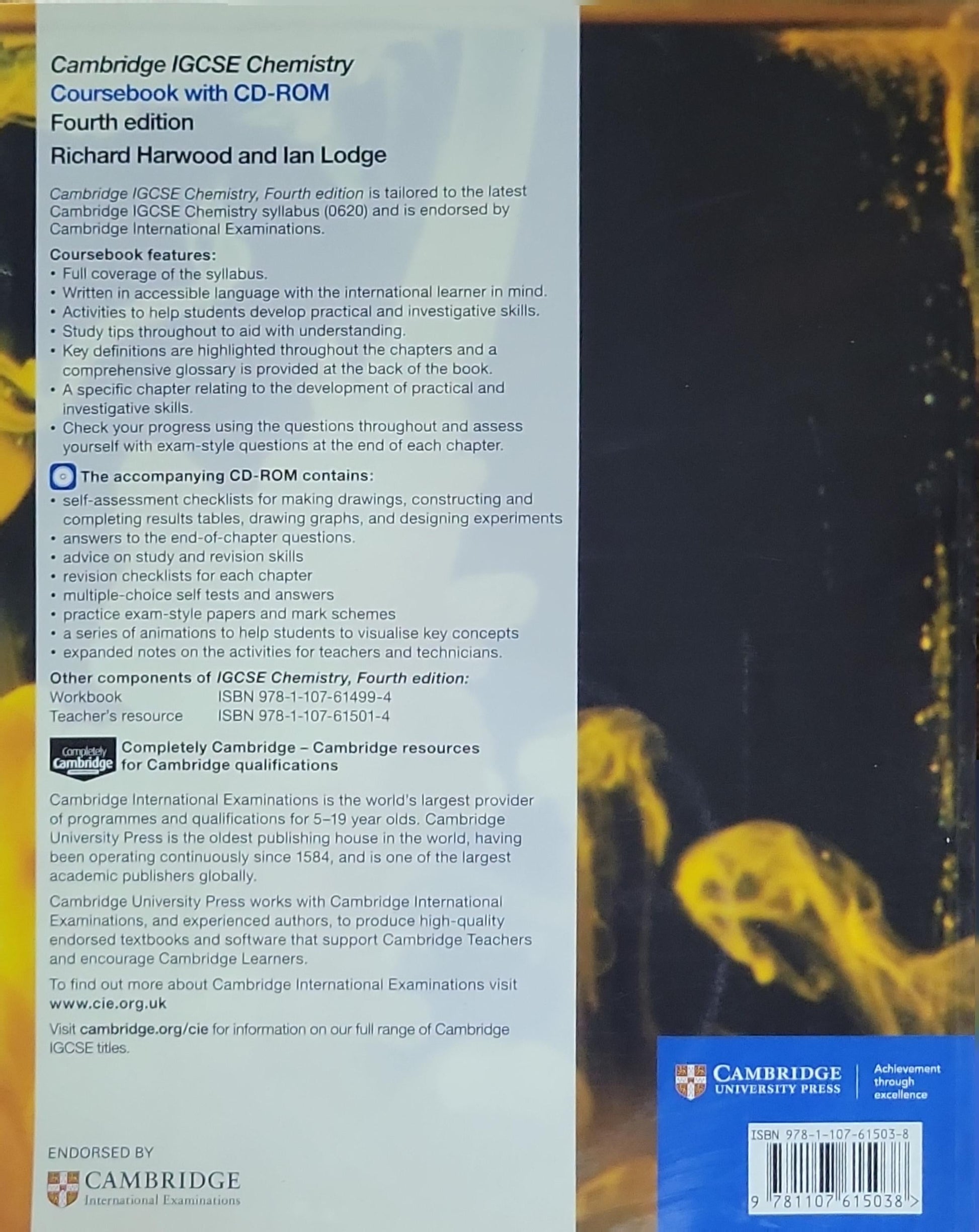 This edition of our successful series to support the Cambridge IGCSE Chemistry syllabus (0620) is fully updated for the revised syllabus from first examination from 2016. Written by a team with teaching and examining experience, Cambridge IGCSE Chemistry Coursebook with CD-ROM gives comprehensive and accessible coverage of the syllabus. Suggestions for practical activities are included, designed to help develop the required experimental skills, with full guidance included on the CD-ROM. Study tips throughout the text, exam-style questions at the end of each chapter and a host of revision and practice material on the CD-ROM are designed to help students prepare for their examinations. Answers to the exam-style questions in the Coursebook are provided on the CD-ROM.
