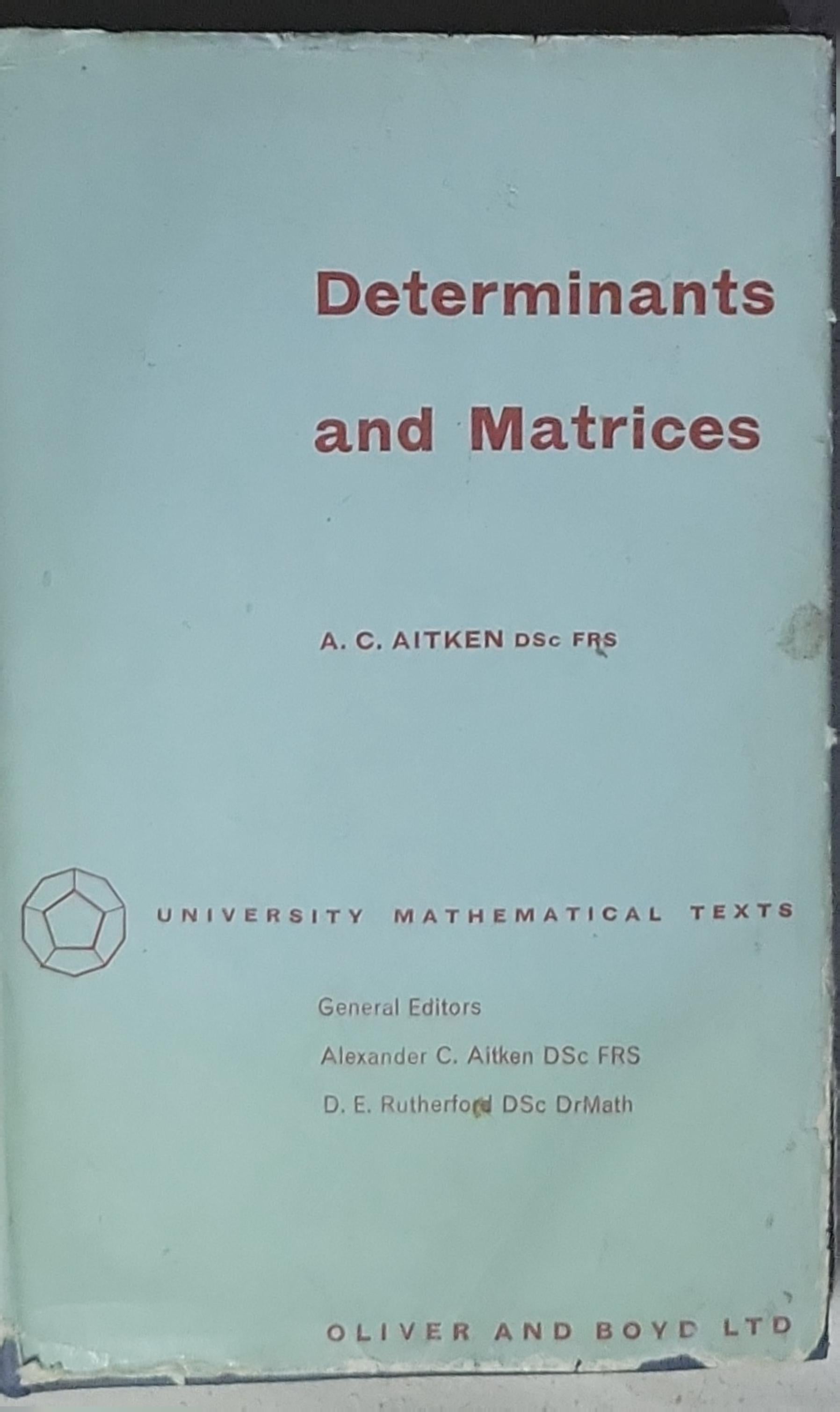 Determinants and Matrices by A. C. Aitken, part of the University Mathematical Texts series, published by Oliver and Boyd Ltd.