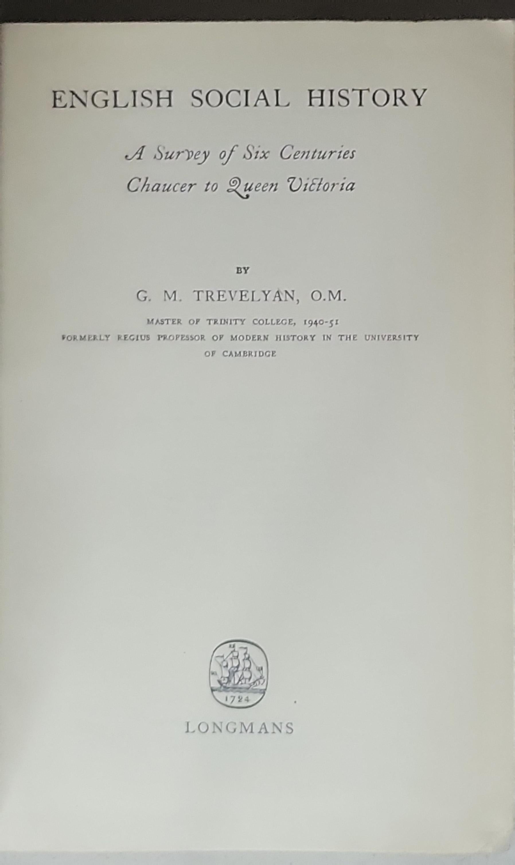ENGLISH SOCIAL HISTORY: A Survey of Six Centuries Chaucer to Queen Victoria