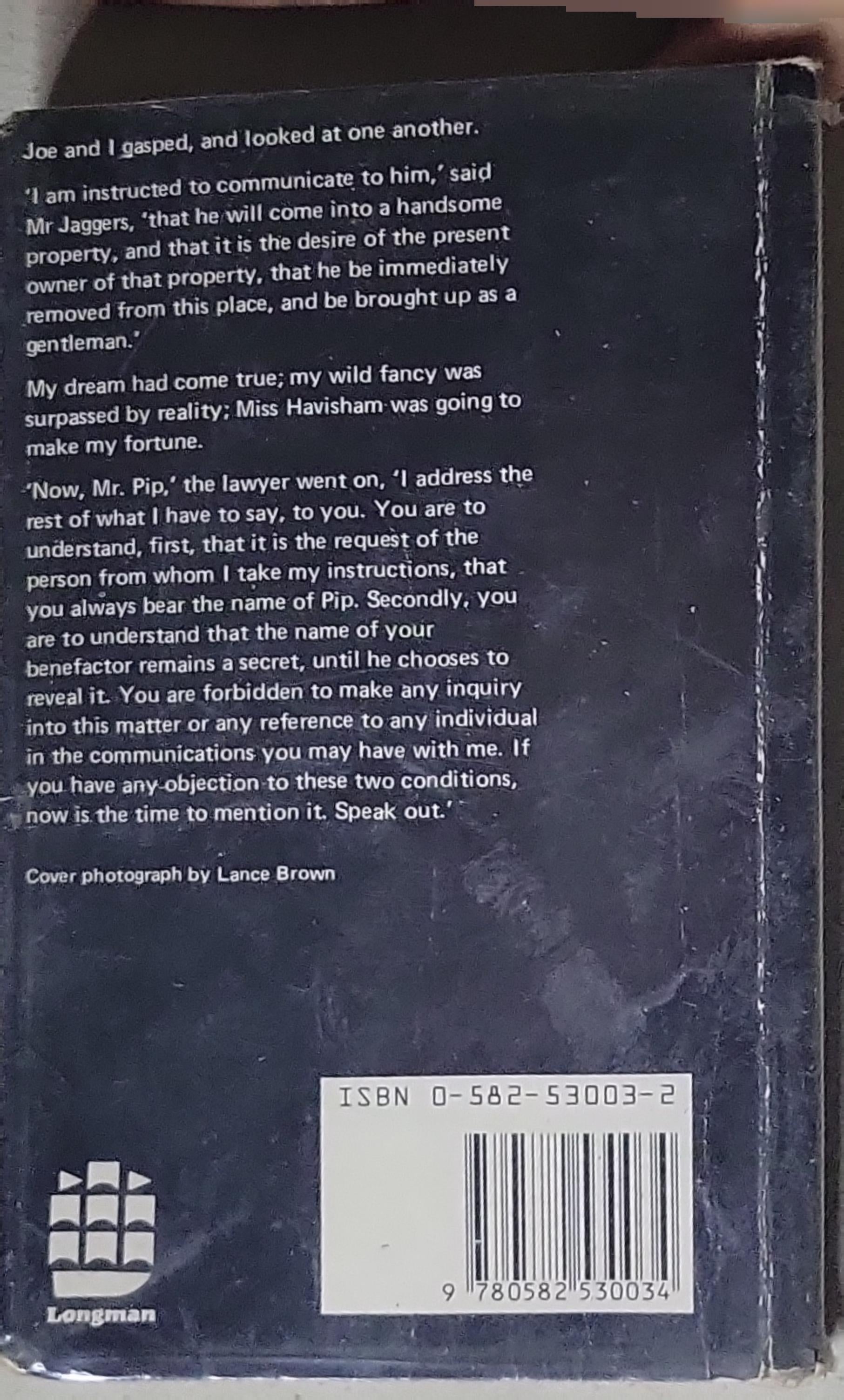 Back cover and spine indicate the edition published by Longman, with the classic text by Charles Dickens. The ISBN shown is 0-582-53003-2, and the spine/cover typography corresponds to Longman’s paperback edition of the novel.