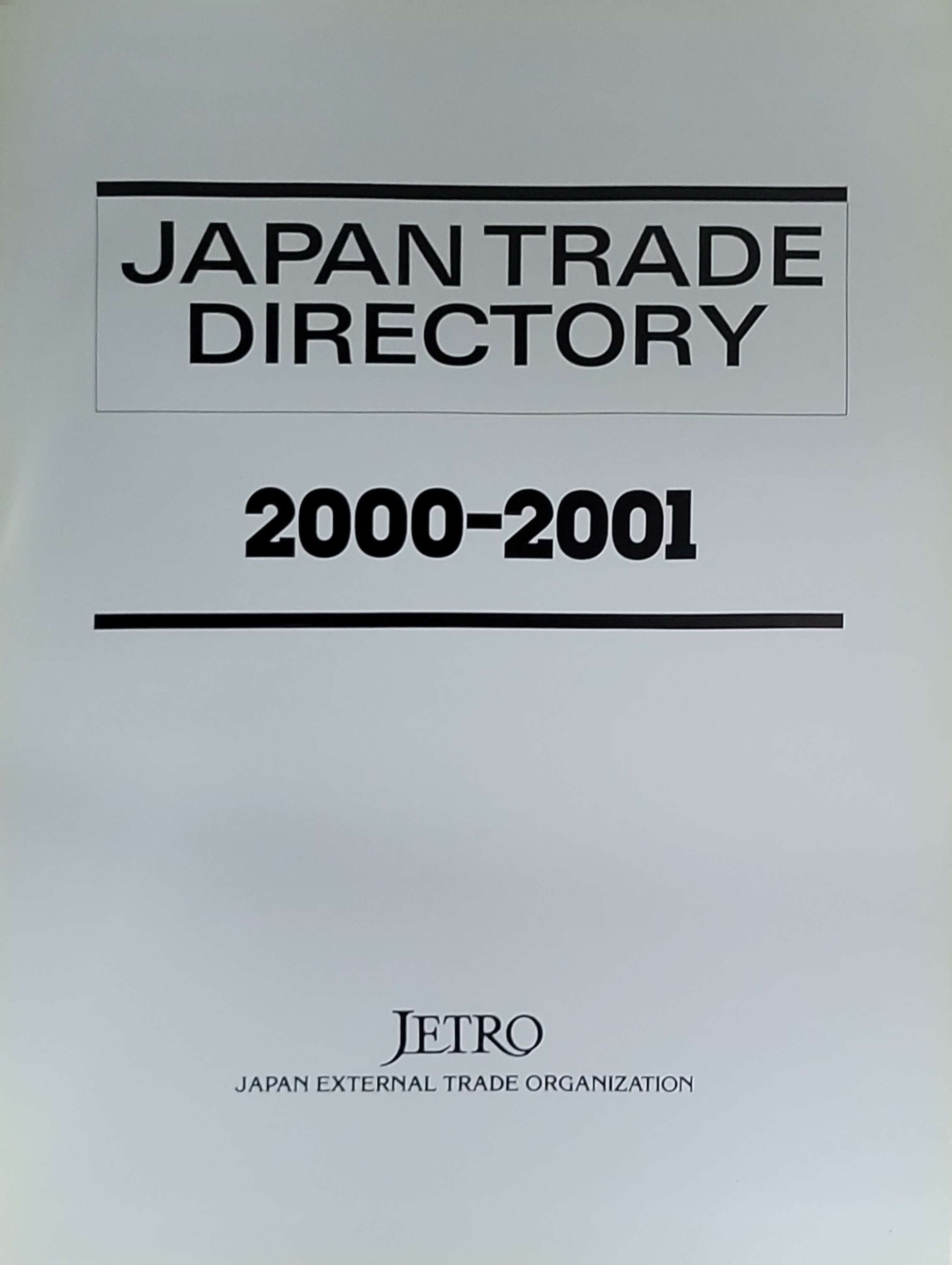 A directory published by the Japan External Trade Organization (JETRO) listing Japanese companies and related trade information for the year 2000–2001. Part of the long-running Japan Trade Directory series (Nihon Bōeki Shinkōkai / JETRO).