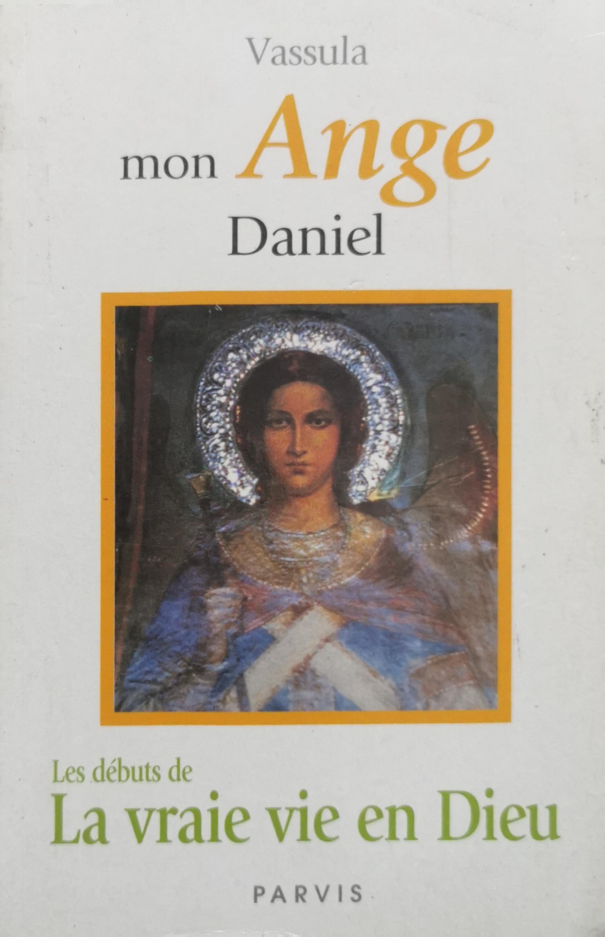 French edition describing the beginnings of the author Vassula’s spiritual experiences with her guardian angel, Daniel, and the messages she received that contributed to the broader work La vraie vie en Dieu.
