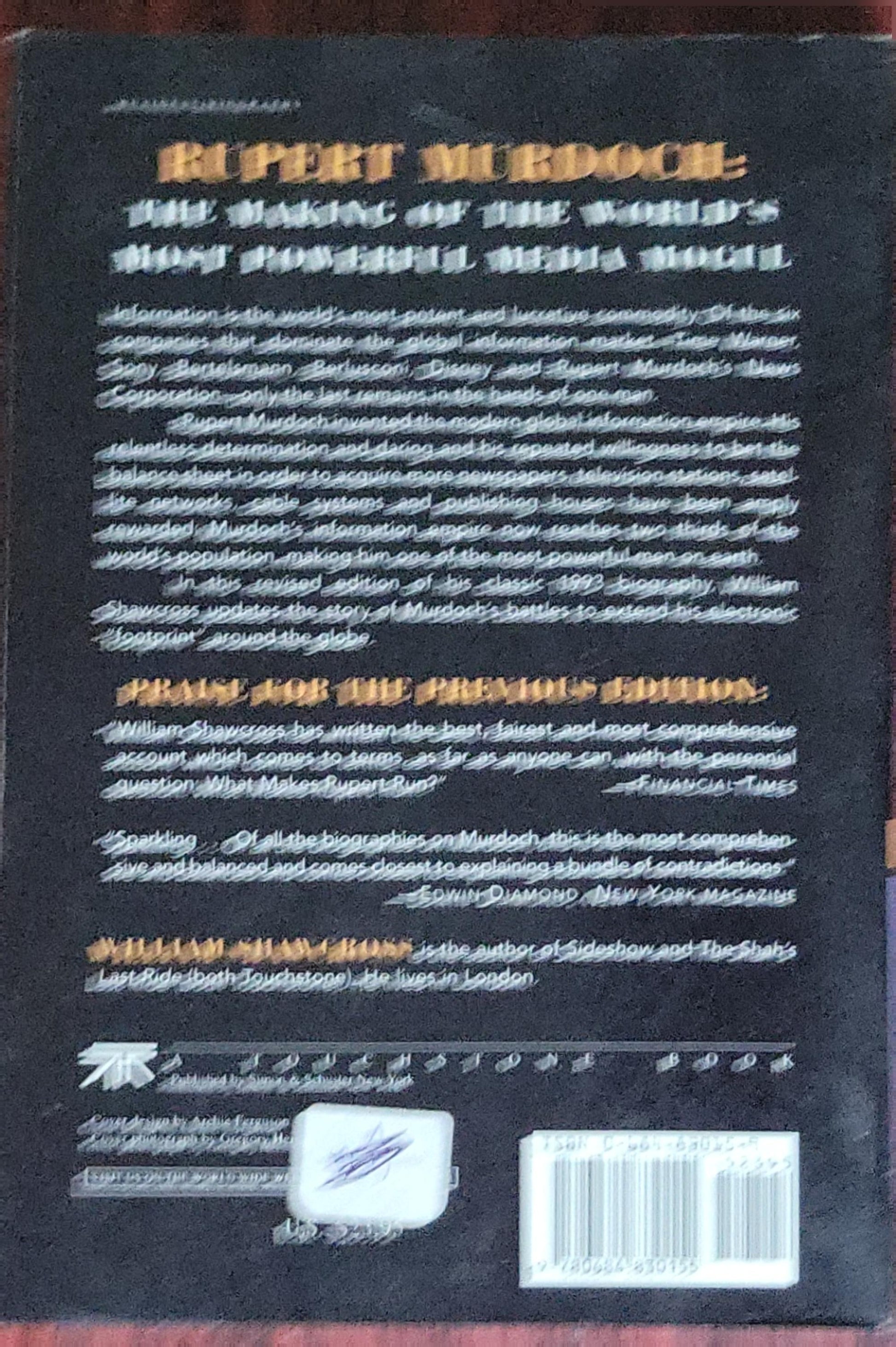 It was Rupert Murdoch who invented the modern media empire. Now his reach includes two thirds of the Earth's population. In this revised and updated edition, William Shawcross brings Murdoch's story up to date. "Of all the biographies on Murdoch, this is the most comprehensive and balanced and comes closest to explaining a bundle of contradictions".--Edwin Diamond, "New York" magazine. photos.