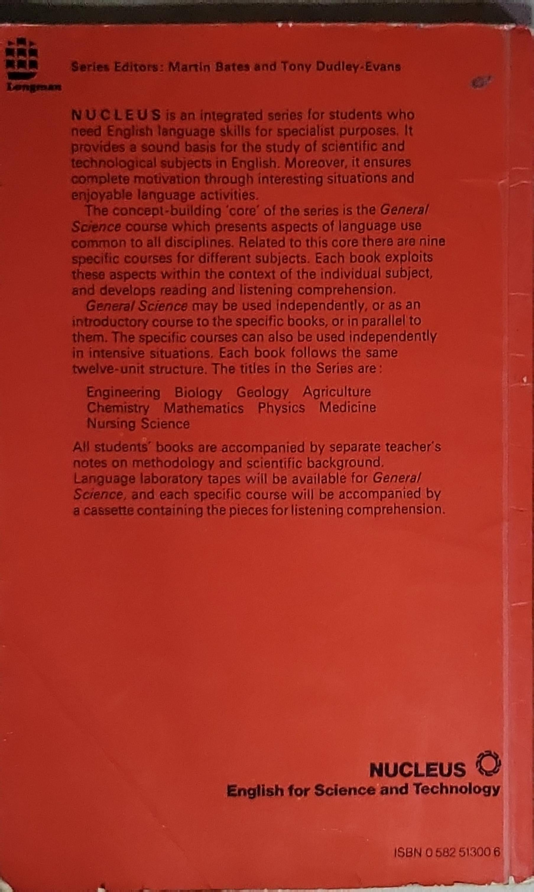 NUCLEUS is an integrated series for students who need English language skills for specialist purposes. This General Science book presents core language for general science topics and supports listening and reading practice with accompanying teacher’s notes and cassette.
