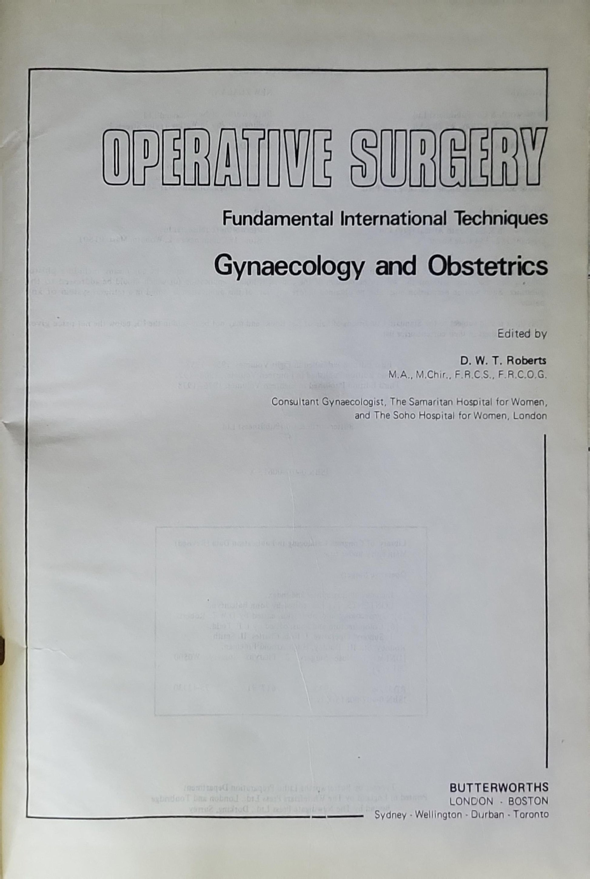 Operative Surgery: Fundamental International Techniques — Gynaecology and Obstetrics