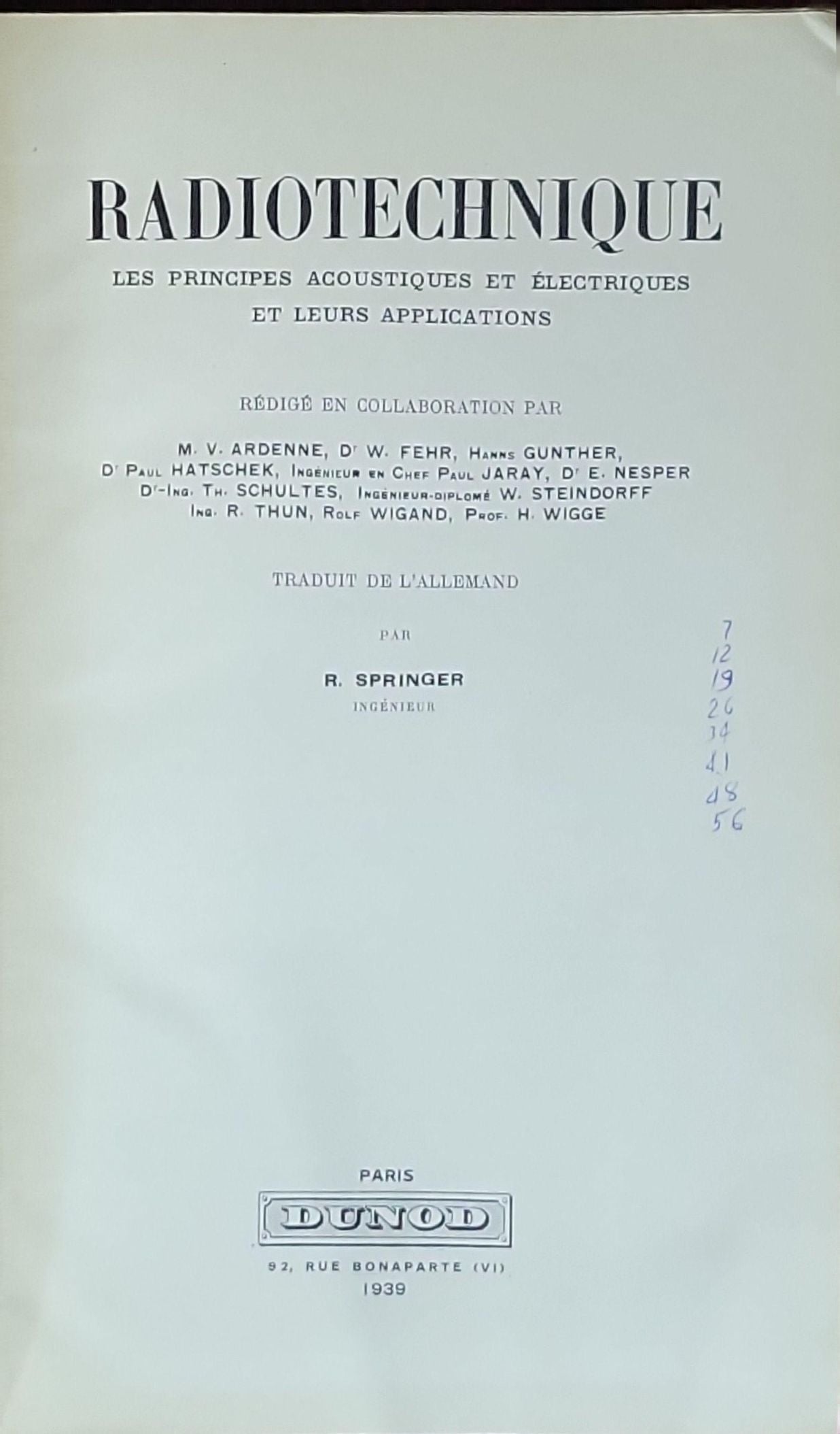 Authors: M. V. Ardenne, D. W. Fehr, Hanns Gunther, D. Paul Hatschek, D'E. Nesper, Dr. Ing. Th. Schultes, Ing. R. Thun, Rolf Wigand, Prof. H. Wigge