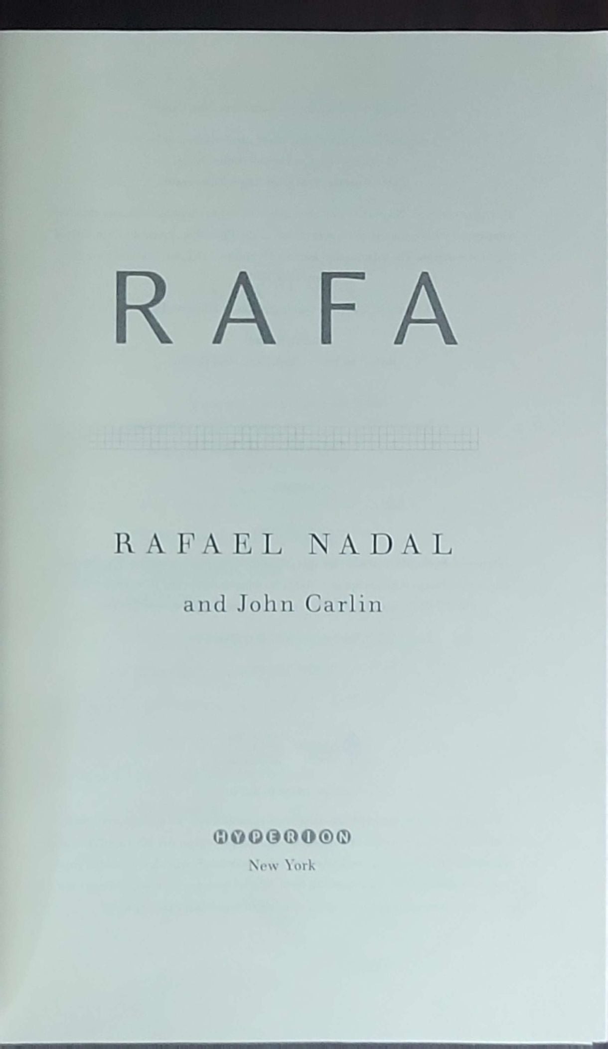Memoir by Rafael Nadal with journalist John Carlin, detailing Nadal’s life and his tennis career, co-authored with John Carlin. First published in hardcover by Hyperion, New York, 2011.