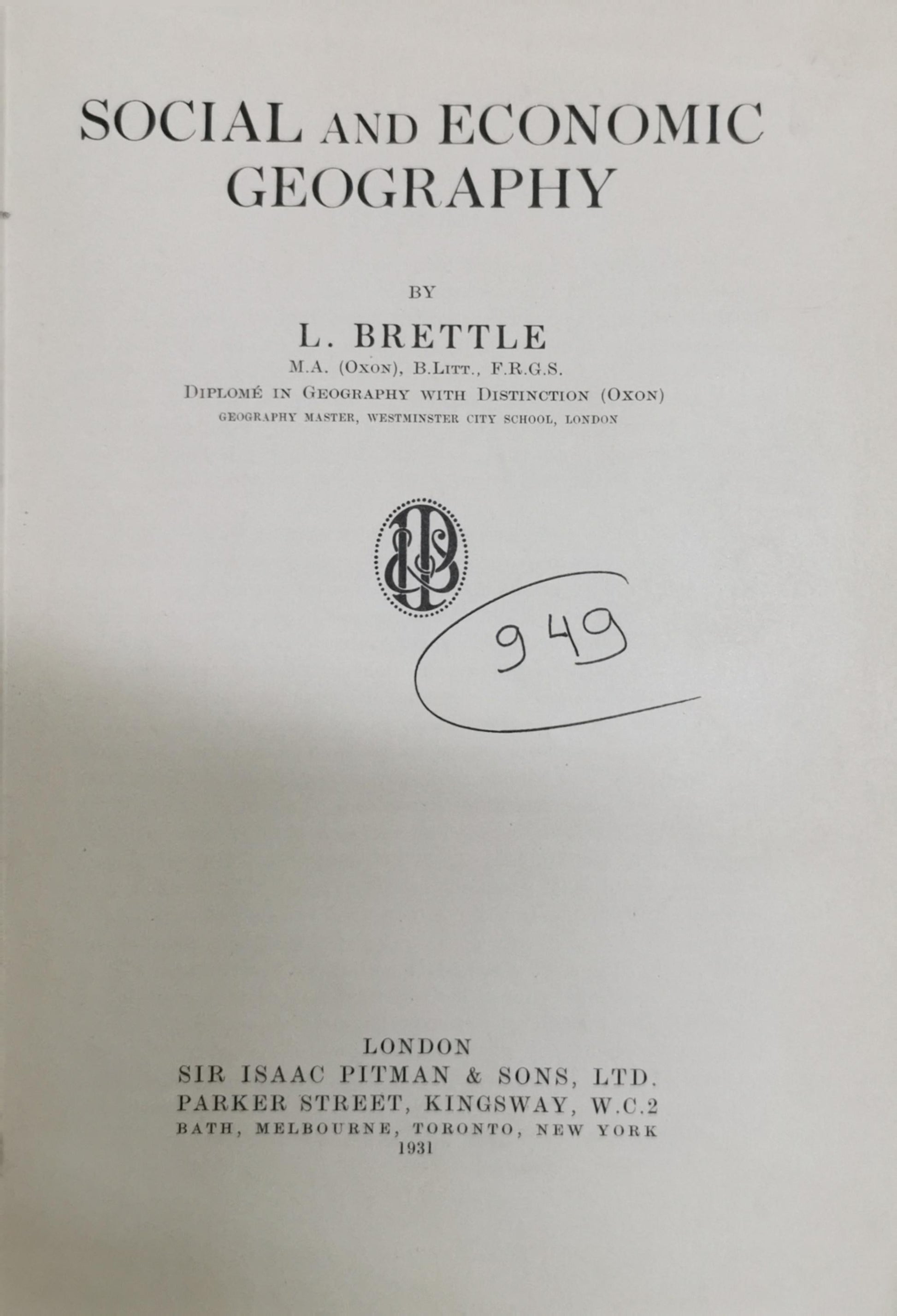 Social & Economic Geography By L. Brettle
