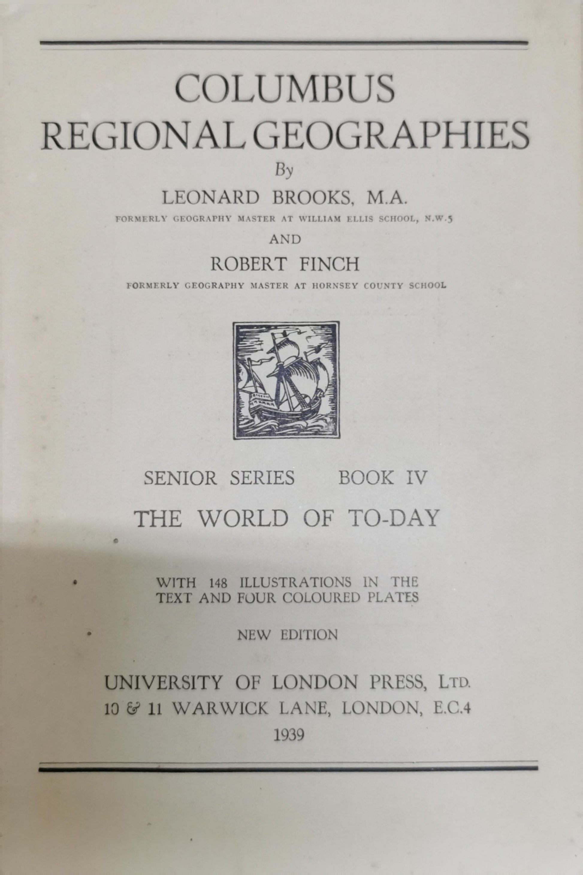 The Columbus Regional Geographies: The World of To-day By Leonard Brooks and Robert Finch