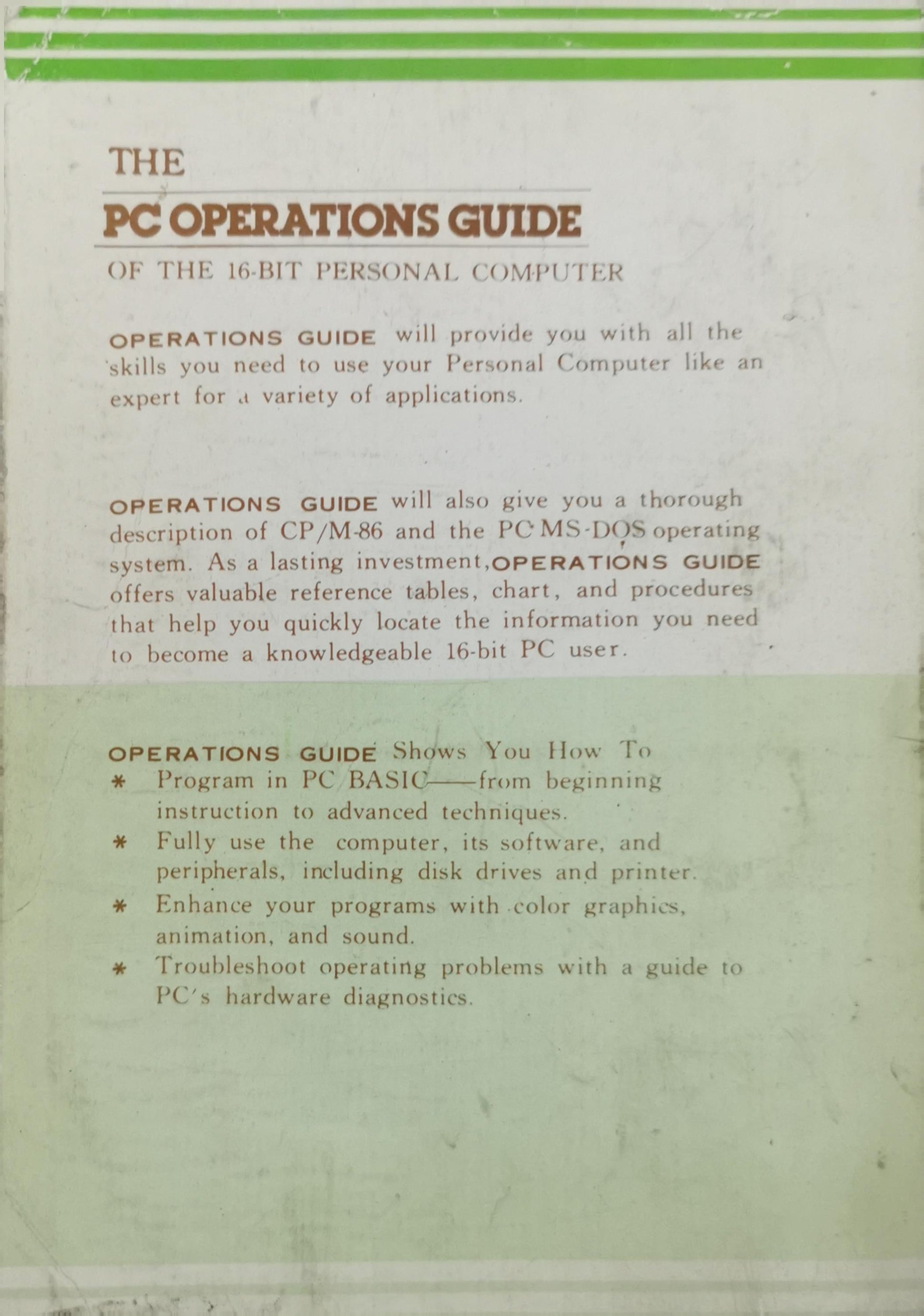 The PC OPERATIONS GUIDE: OF THE 16-BIT PERSONAL COMPUTER (to the 16-bit PC & XT DOS 2.0 & BASIC 2.0) By kolektiv