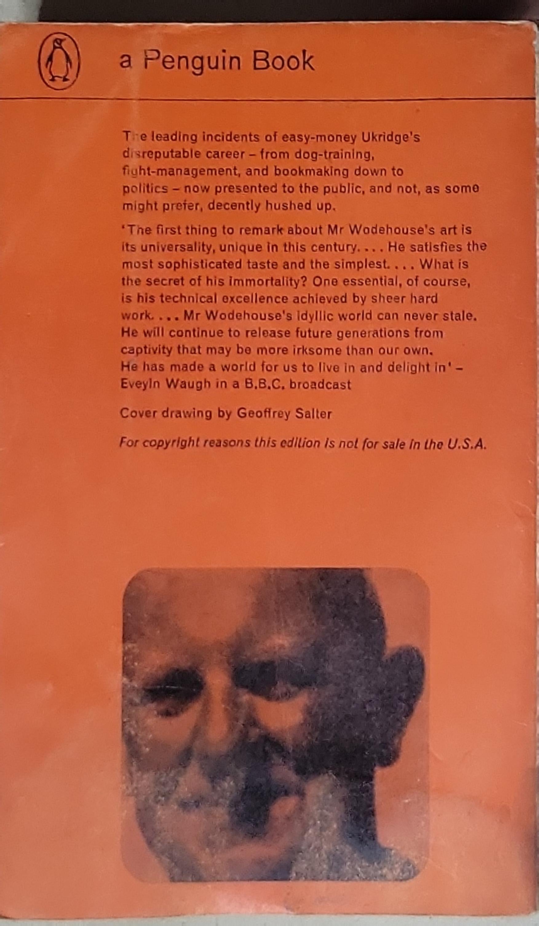 A Penguin Book edition of P. G. Wodehouse's Ukridge, featuring the misadventures of the flamboyant Ukridge and his circle, as presented in a mid-20th-century Penguin edition with the front cover art by Geoffrey Salter and a UK copyright-not-for-sale notice on the back.